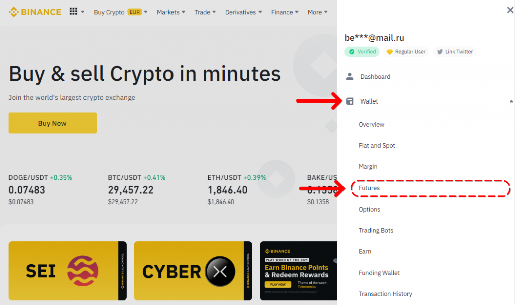 - 在个人中心找到币本位或 U 本位账户,确保法币入金后的资金已划转至现货钱包。
