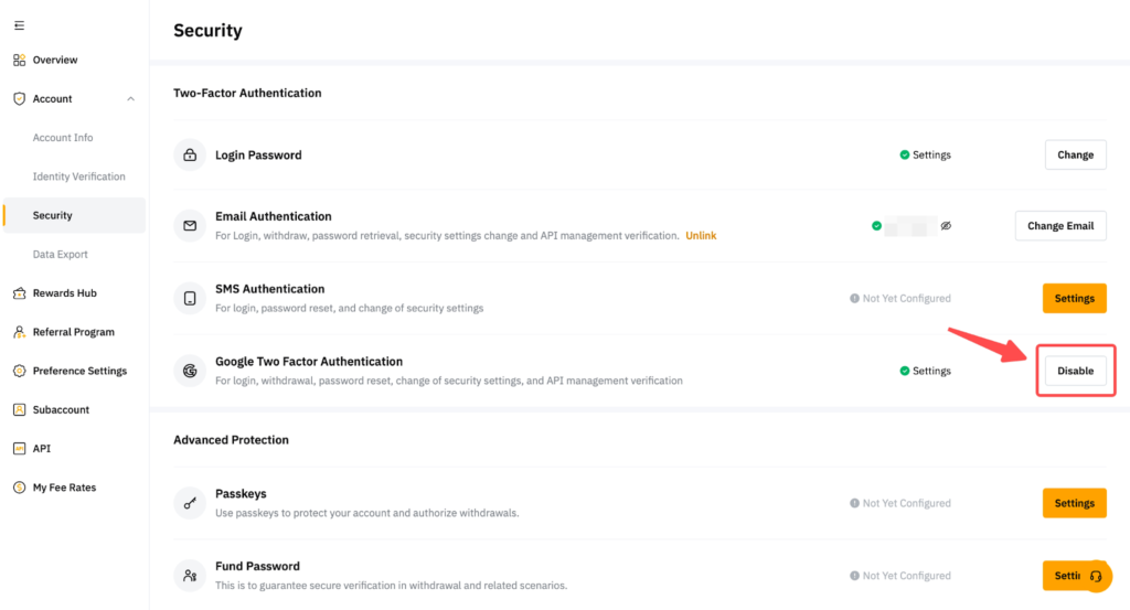 - 选择丢失谷歌验证器选项并按照提示输入邮箱或手机收到的二级验证码。